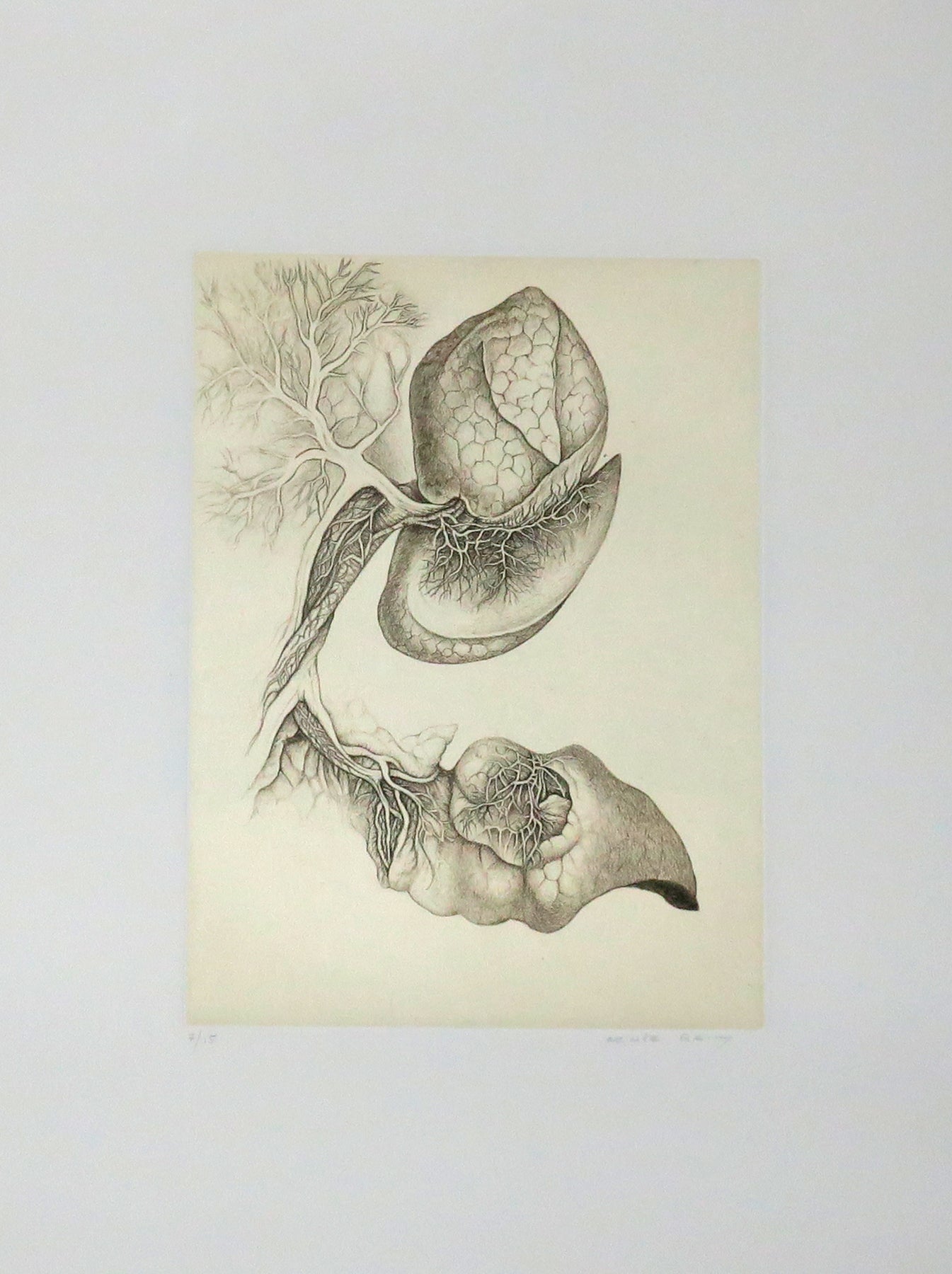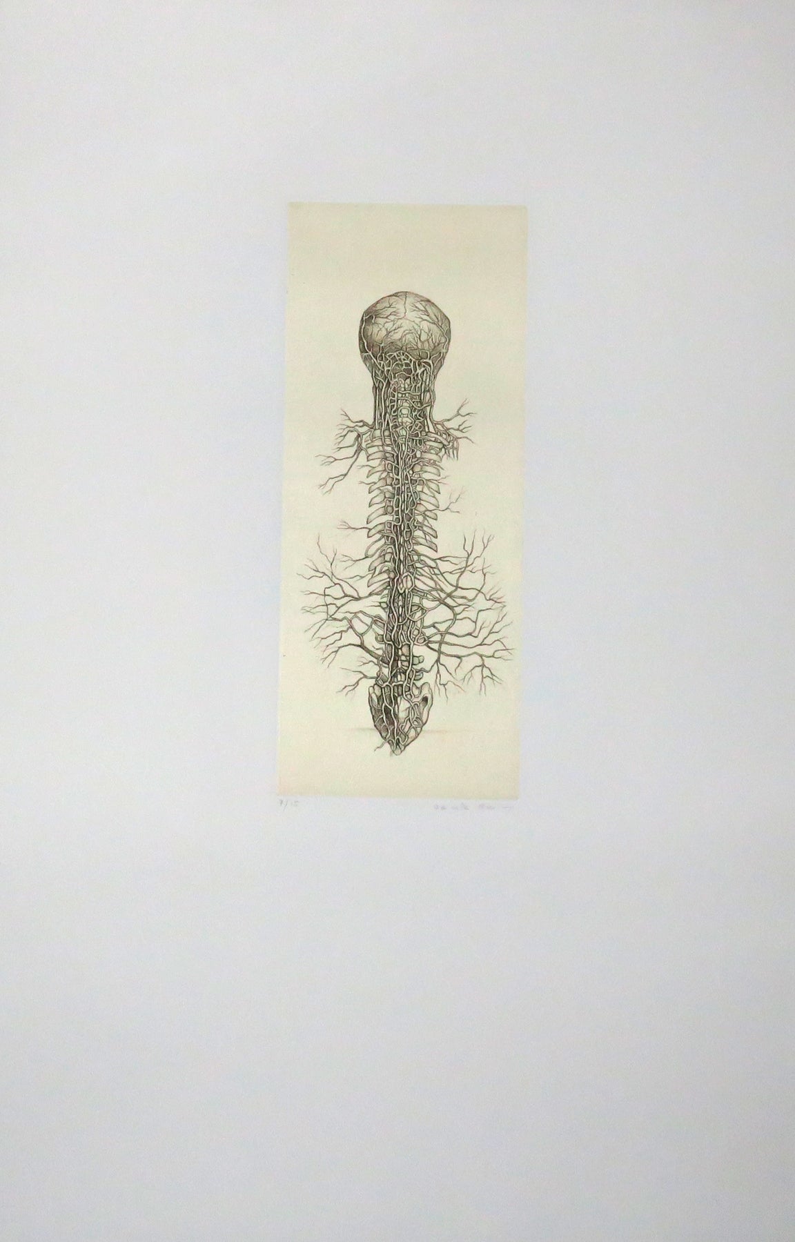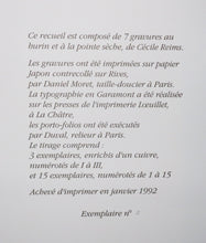 Titre : Ailleurs. 1992. Ouvrage complet de ses 7 gravures au burin et à la pointe sèche, imprimées sur Japon contrecollées sur Rives par Daniel Moret à Paris. Toutes les planches sont justifiées 7/15 et signées au crayon gris par l’artiste. Portfolio de toile moutarde, à rabats et titré, réalisé par Duval (relieur à Paris). Exemplaire numéroté 7 (d’une édition totale à 18). |