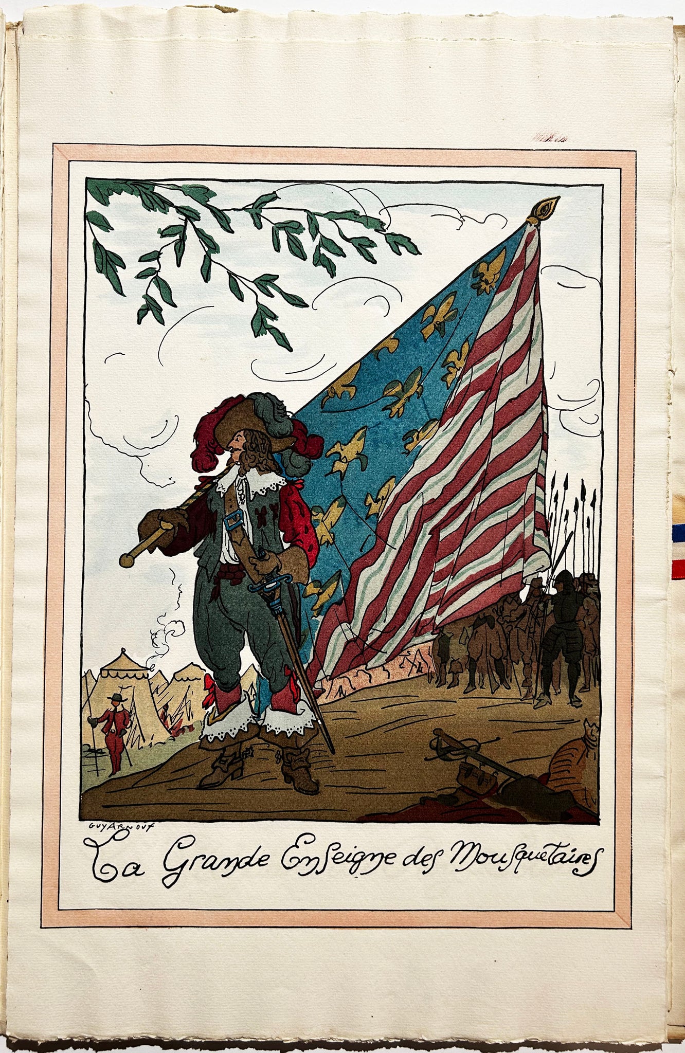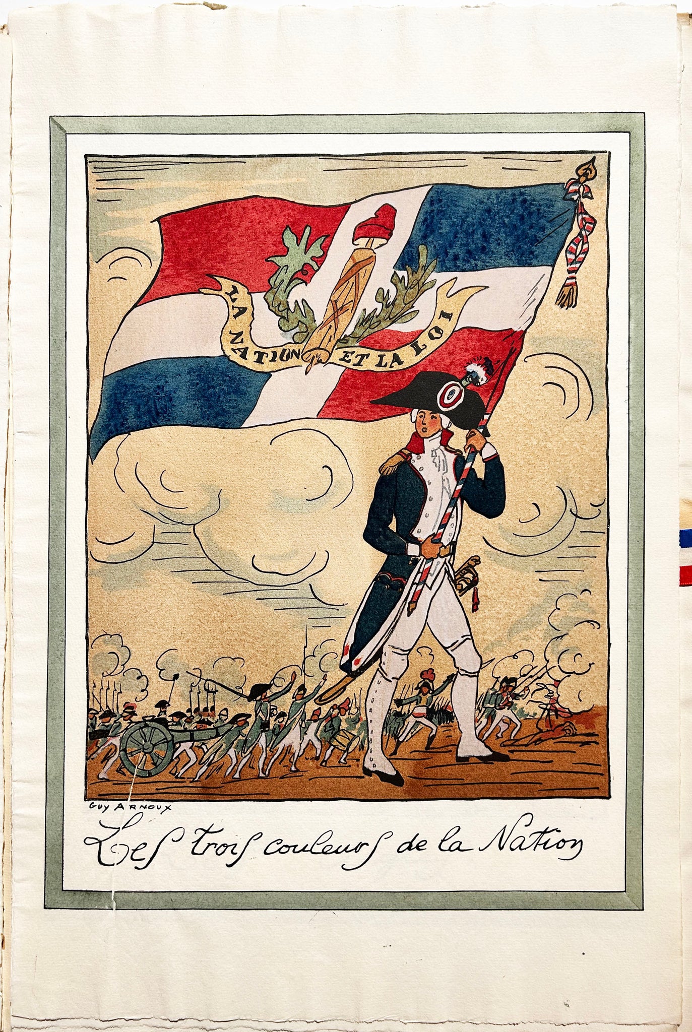 Belles épreuves sur papier vergé Ingres, toutes signées dans la planche, sous chemise illustrée cartonnée ivoire à rabats fermée par un ruban tricolore. Exemplaire numéroté 145 d'un tirage total à 500 exemplaires, édité par Devambez. Bel état de conservation pour les planches. |