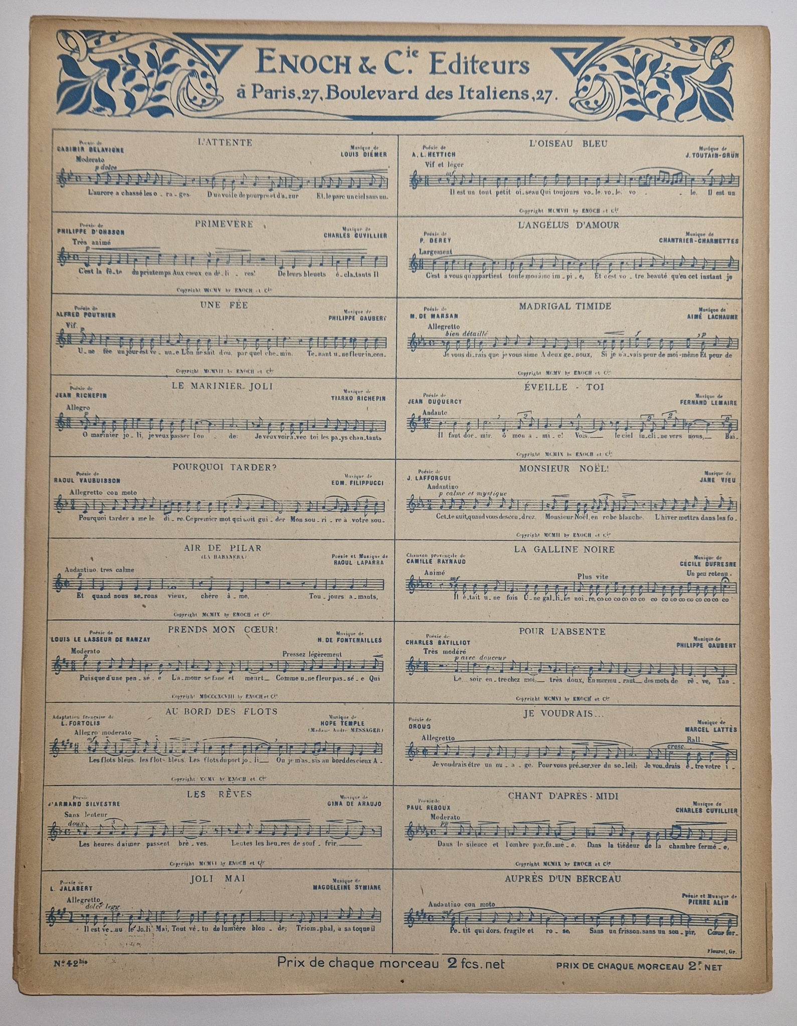 Paris, Enoch & Cie Editeurs, 1919, 5 pp. |