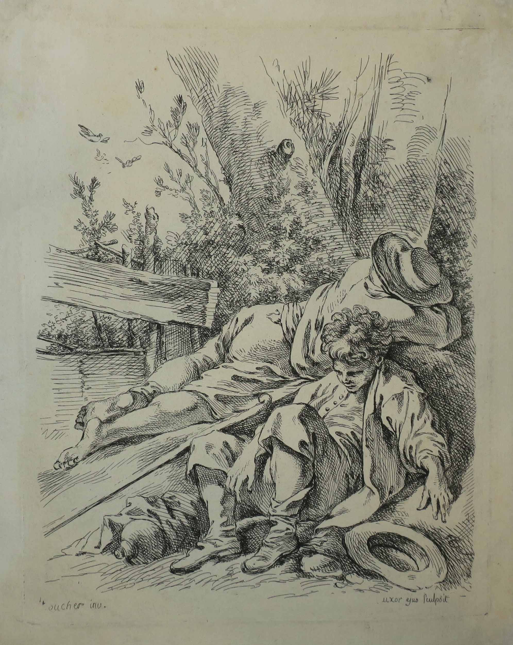 | Gravure à l'eau-forte d'après François Boucher (Paris 1703 † 1770), sur papier vergé. |