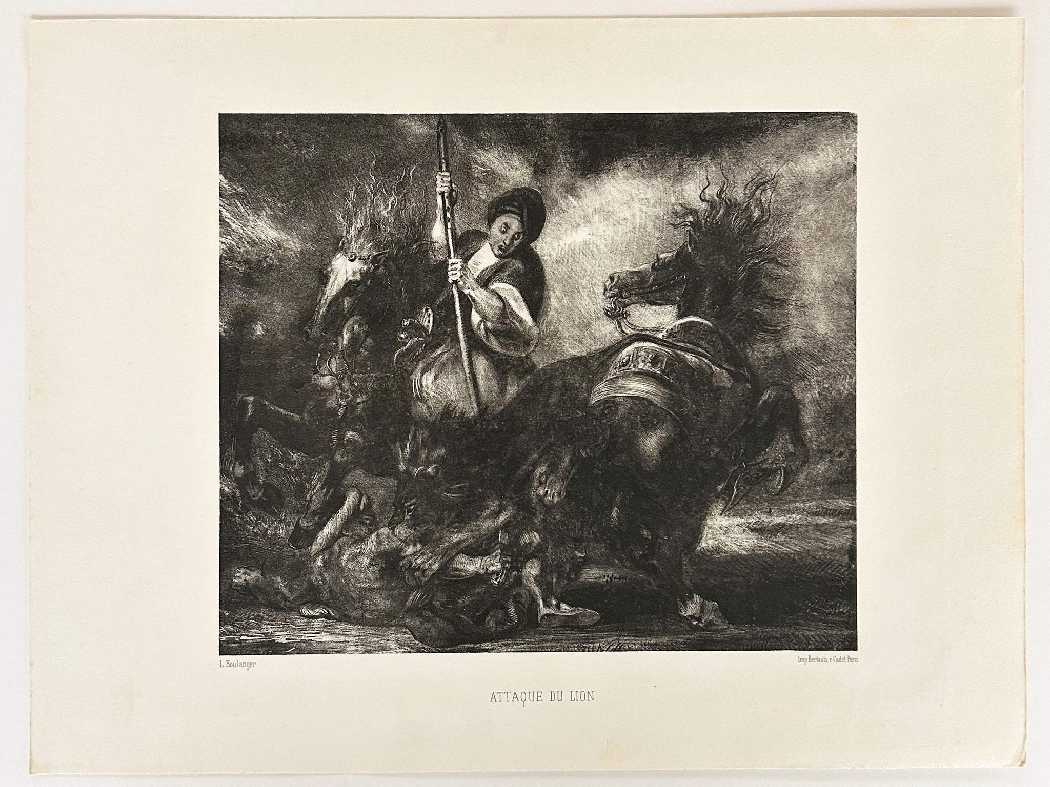 Epreuve avec la lettre, sur papier vélin. Imprimée par Bertauts, à Paris. Bonnes marges. Bon état de conservation. |