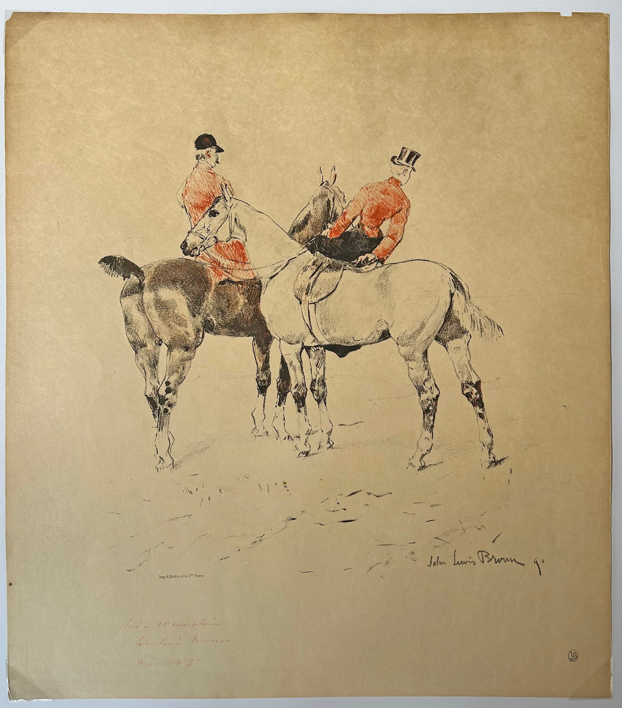 Signée et datée dans la planche. Epreuve sur japon fort, annotée "tiré à 25 exemplaires / John Lewis Brown / mars 1890" à l'encre rouge en marge inférieure. Revêtue de la marque de collection d'Emmanuel Alfred Beurdeley (Paris 1847-id. 1919, Lugt 421). Imprimée par H. Belfond & Cie, à Paris. Marges. |