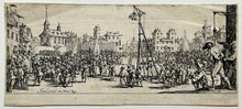 Planche 10 de la suite de 18 pièces "Les Grandes Misères de la Guerre". Rare épreuve du 1er état sur 3, avec l'excudit de Silvestre et avant les six vers dans la marge, sur papier vergé filigrané (Huchet, fil. Lieure n°44 ou n°45). Filet de marges. |