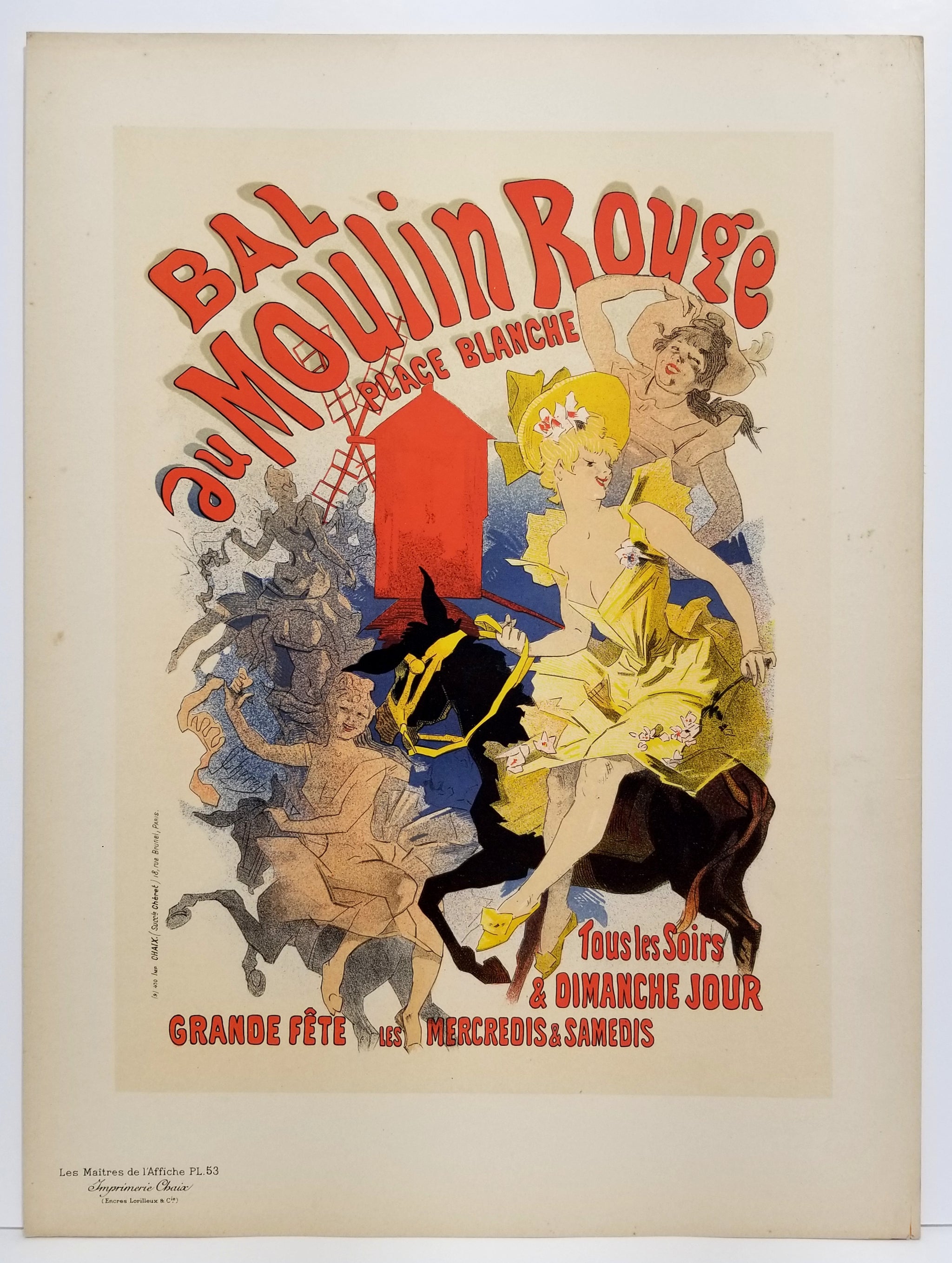 Planche n°53 du second volume annuel (1897) des Maîtres de l'affiche. Épreuve portant le timbre sec des Maîtres de l'Affiche dans le coin inférieur droit (Lugt : L.1777c ), signée dans la planche, imprimée chez Chaix (Ateliers Chéret) rue Bergère à Paris. Composition créée en 1889 pour le Bal du Moulin Rouge. |