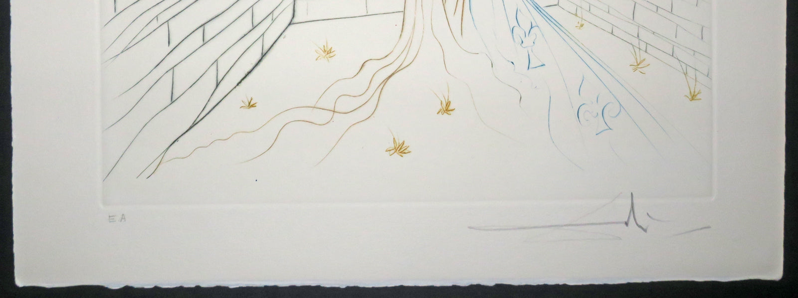 Belle épreuve à bonnes marges, sur papier vélin, justifiée "E.A" au crayon gris et signée par l'artiste au crayon noir. De la série de 12 planches "La Quête du Graal". Provenance: Galerie Michèle Broutta. |