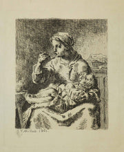 Signée et datée à la pointe en bas à gauche sous la composition. Belle épreuve avec marges. |