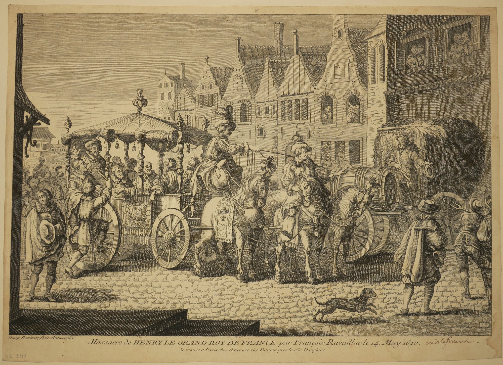 Epreuve du 2ème état (sur 2) avec la lettre en français, sur papier vergé filigrané (lettres). Avec l'adresse "Se trouve à Paris, chez Odieuvre rüe Danjou près la rüe Dauphine". Marges du cuivre. |
