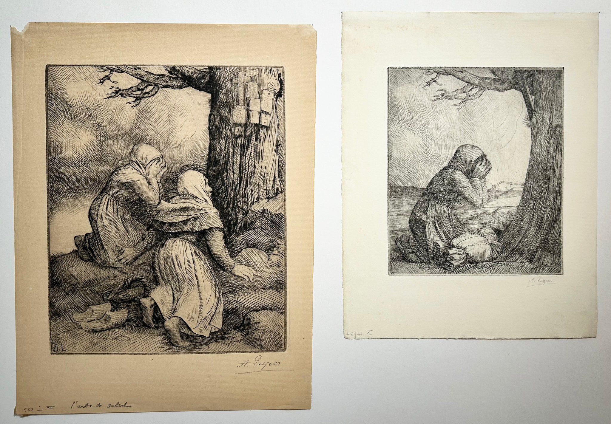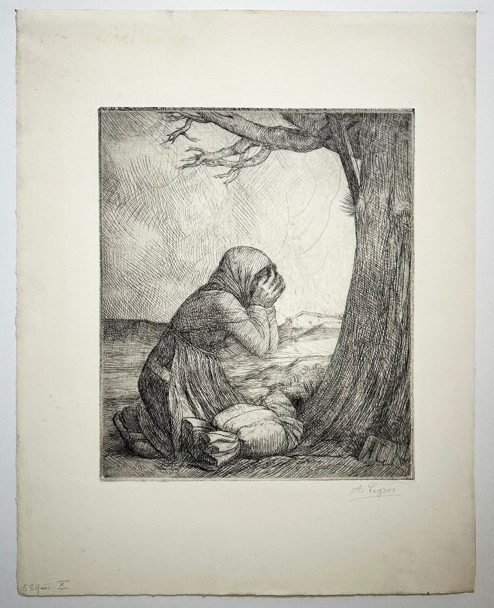 Signée des initiales à la pointe dans la planche. Epreuve du 1er état sur 3, sur papier vergé, contresignée au crayon par l'artiste. Marges. On y joint une épreuve du 3ème état sur 3, le cuivre réduit et retravaillé, sur papier vergé, contresignée au crayon par l'artiste. Bonnes marges. Bel état de conservation. |