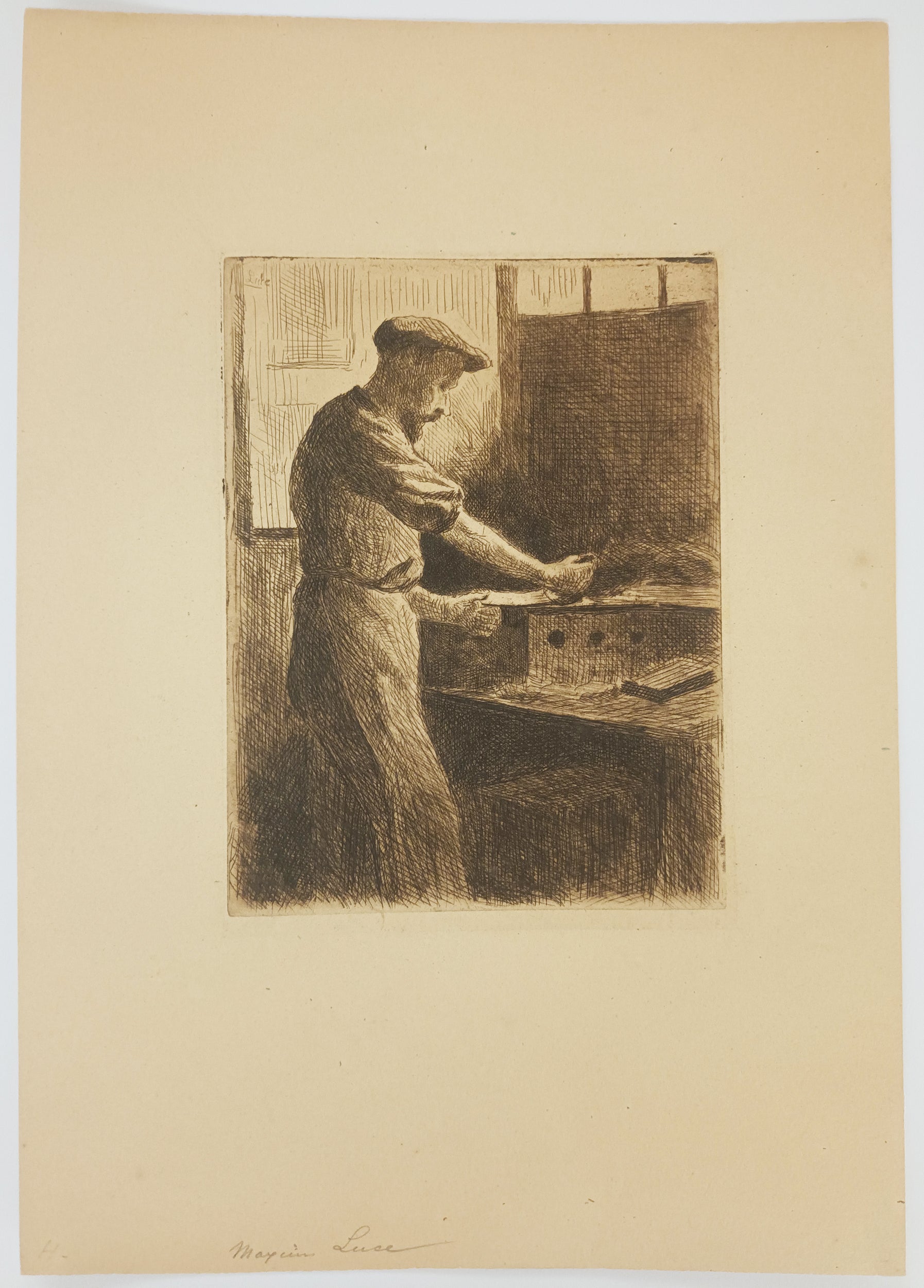 Chez Delâtre : Auguste Delâtre au travail.  Vers 1890.