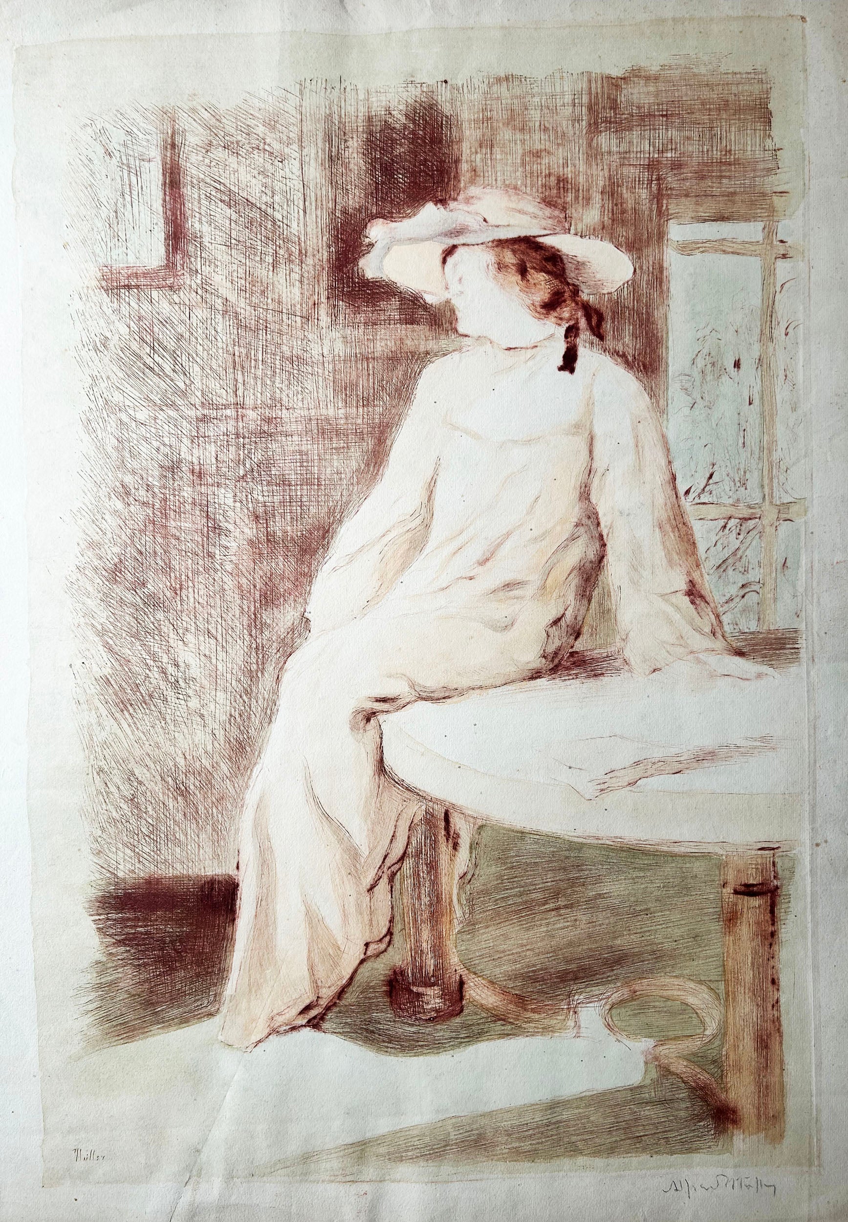 Alfredo MÜLLER L'été (Femme assise). 1899. Gravure originale en couleurs, signée par l'artiste.