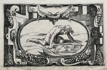 Premier sujet signé des initiales dans la planche. Epreuve sur papier vergé filigrané (pèlerin dans un cercle). Bonnes marges. |