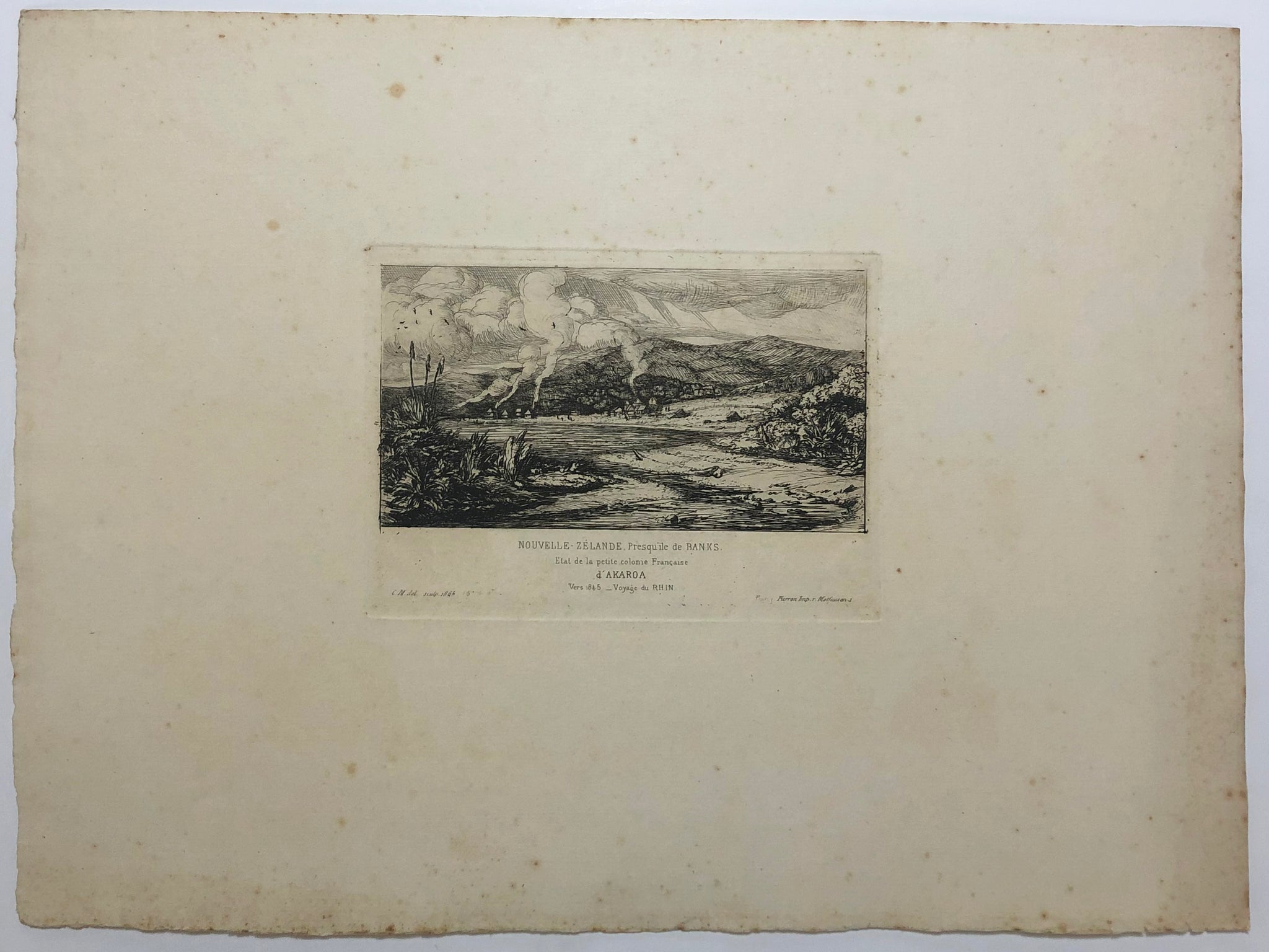 Décrit comme le père de la gravure moderne, l'officier de marine Charles Meryon était l'un des artistes les plus importants à avoir travaillé à Waitaha (Canterbury) à l'époque coloniale. Il a stationné à Akaroa entre 1843 et 1846, pour y surveiller la colonie française. C’est à cette occasion que Meryon a fait de nombreuses études au crayon à Akaroa qu'il a ensuite utilisées comme base pour une série d'eaux-fortes achevée à Paris dans les années 1860. L’artiste prévoyait de publier ces images et d'autres du Pacifique dans un album, mais il n’a malheureusement jamais terminé.