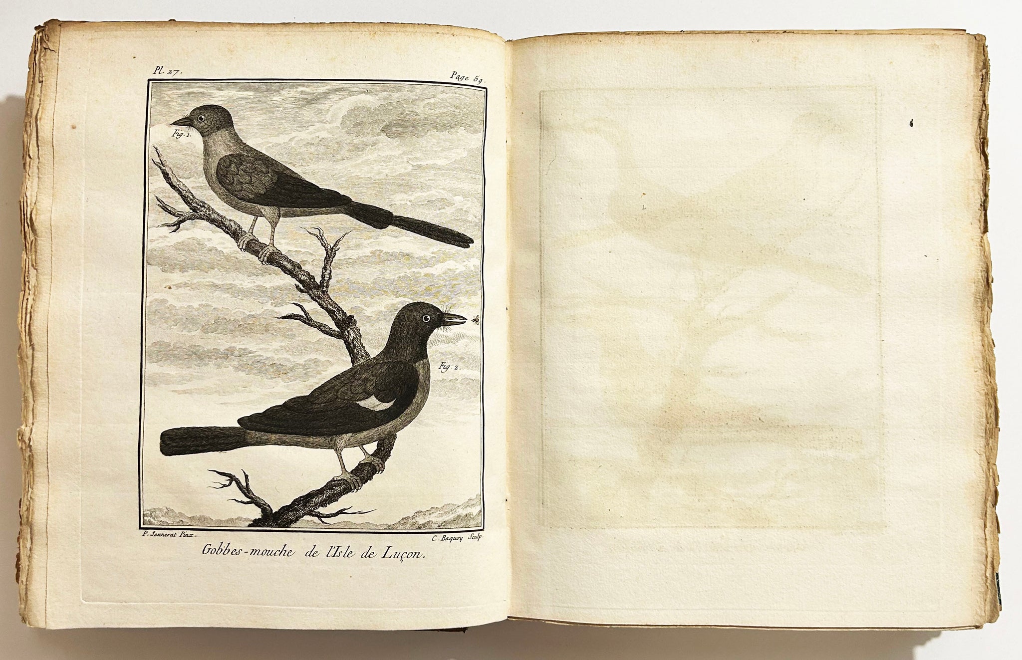 Voyage à la Nouvelle Guinée, dans lequel on trouva la description des Lieux, des Observations physiques & morales, & des détails relatifs à l’Histoire Naturelle dans le Règne Animal & le Règne Végétal. A Paris, Chez Ruault, 1776, XII pp, 202 pp, 120 pl. In-4° sous demi-reliure cartonnée. Des petites rousseurs éparses. Plusieurs pages anciennement annotées à la plume.