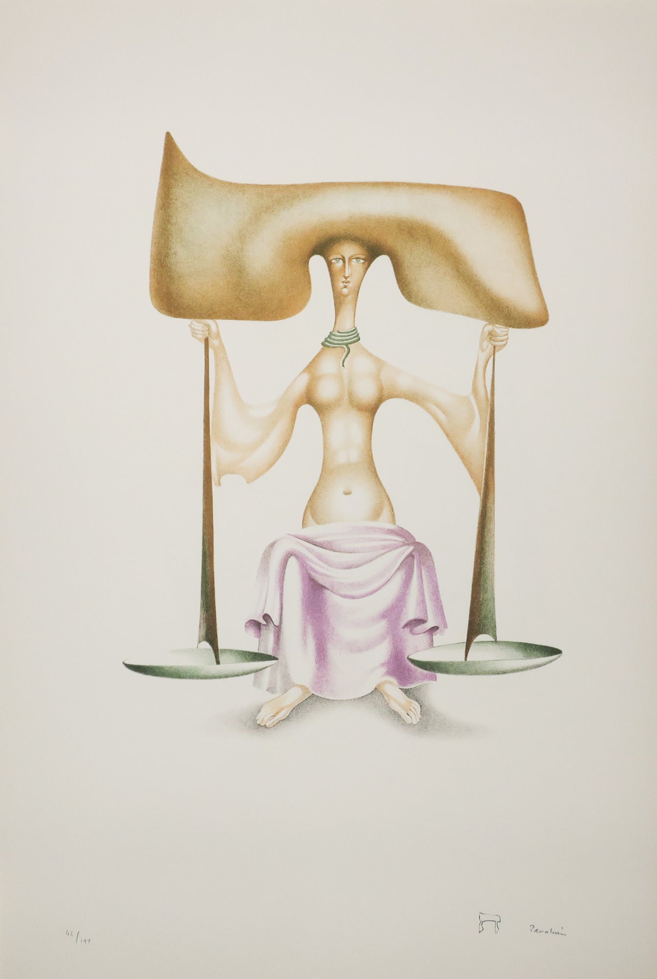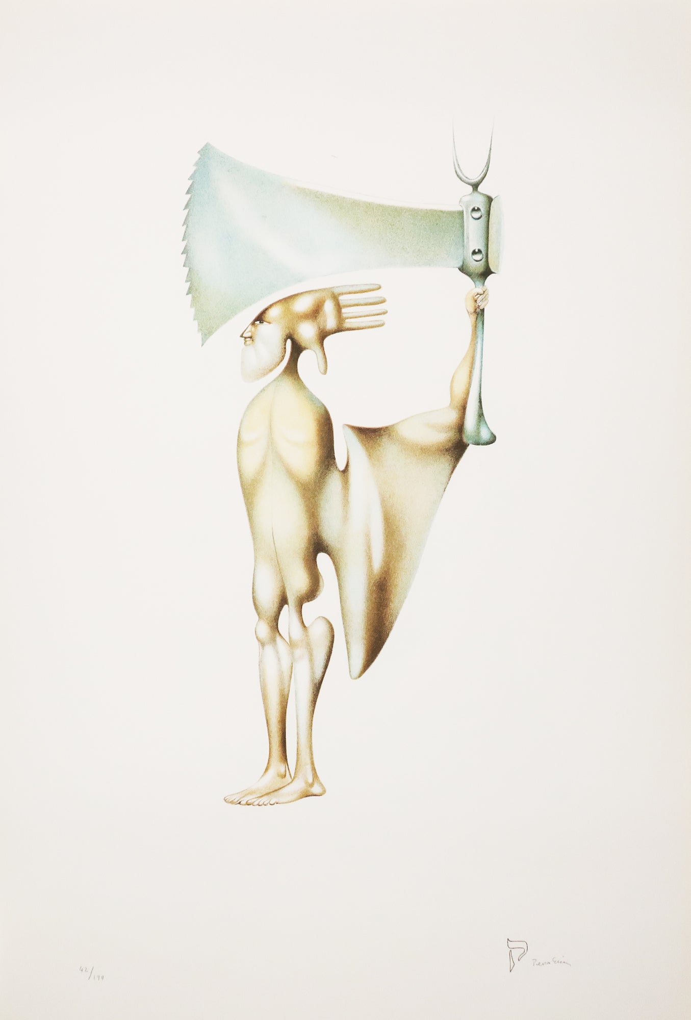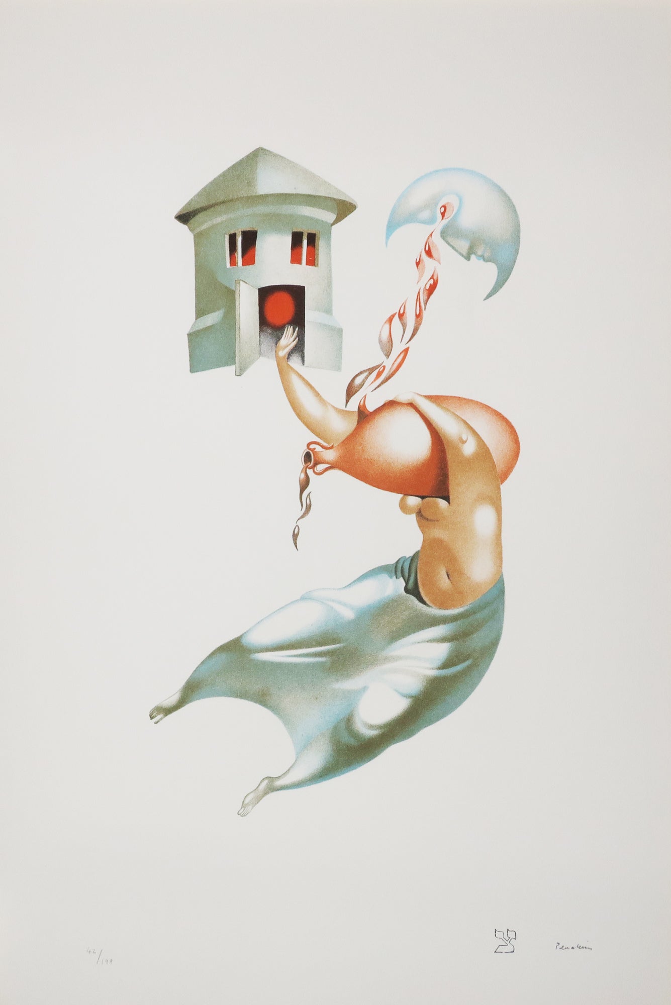 Editions Galerie Mony Calatchi, Paris, 1974. Préface de Marina Vanci. Couverture papier rempliée. Ouvrage complet de ses 22 lithographies originales par Perahim, imprimées en couleurs. Toutes les planches sont numérotées et signées au crayon par l’artiste. Exemplaire numéroté 42/199. Le tirage de cette édition se répartit comme suit : 25 exemplaires en papier d’Arches représentant les exemplaires de tête numérotés de A à Z, 199 exemplaires sur papier d’Arches numérotés de 1 à 199. Emboîtage d’éditeur, toilé bleu et titré. Chacune des lithographies, d’esprit surréaliste, illustre une lettre de l’alphabet hébreu. Jules Perahim représente l’une des figures les plus marquantes de l’avant-garde en Roumanie des années 1930. Artiste complet aux différentes facettes, dessinateur, peintre, illustrateur, scénographe, Perahim est l'auteur d'une oeuvre foisonnante, à la fois onirique et engagée, qu'il développe d'abord à Bucarest dès les années 1930, puis en France. Ses dessins paraissent aux côtés des travaux de Victor Brauner dans la revue non conformiste d'esprit dada et surréaliste Unu puis dans Alge dont Perahim est un des fondateurs avec le poète Gherasim Luca. |