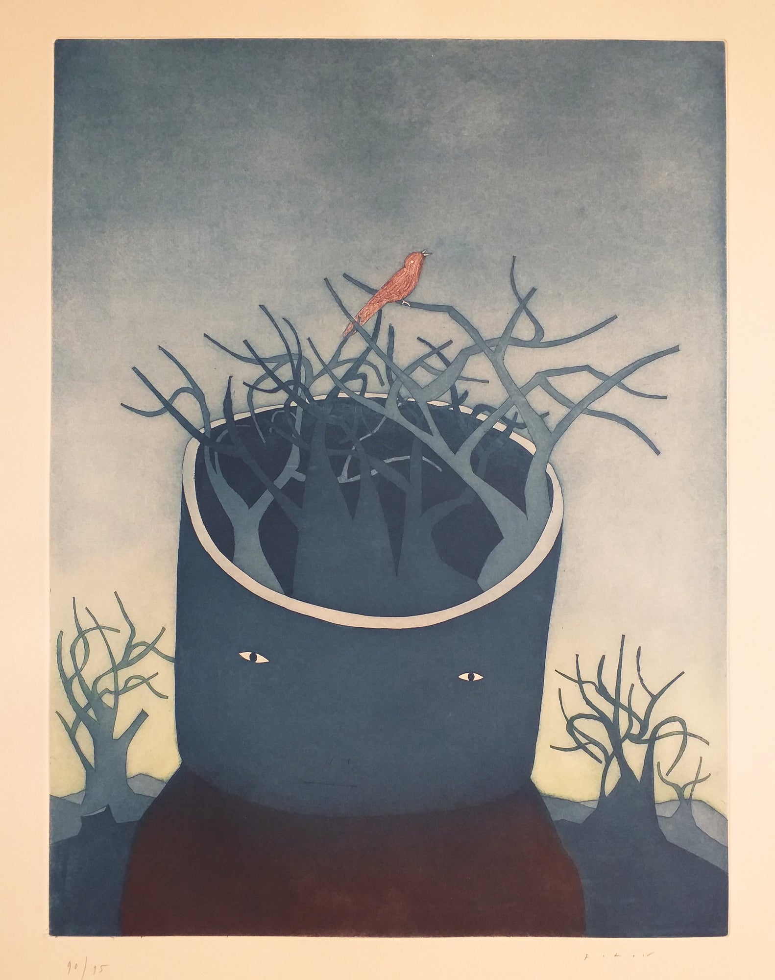 | Gravure originale à l'eau-forte et aquatinte, imprimée en couleurs. |