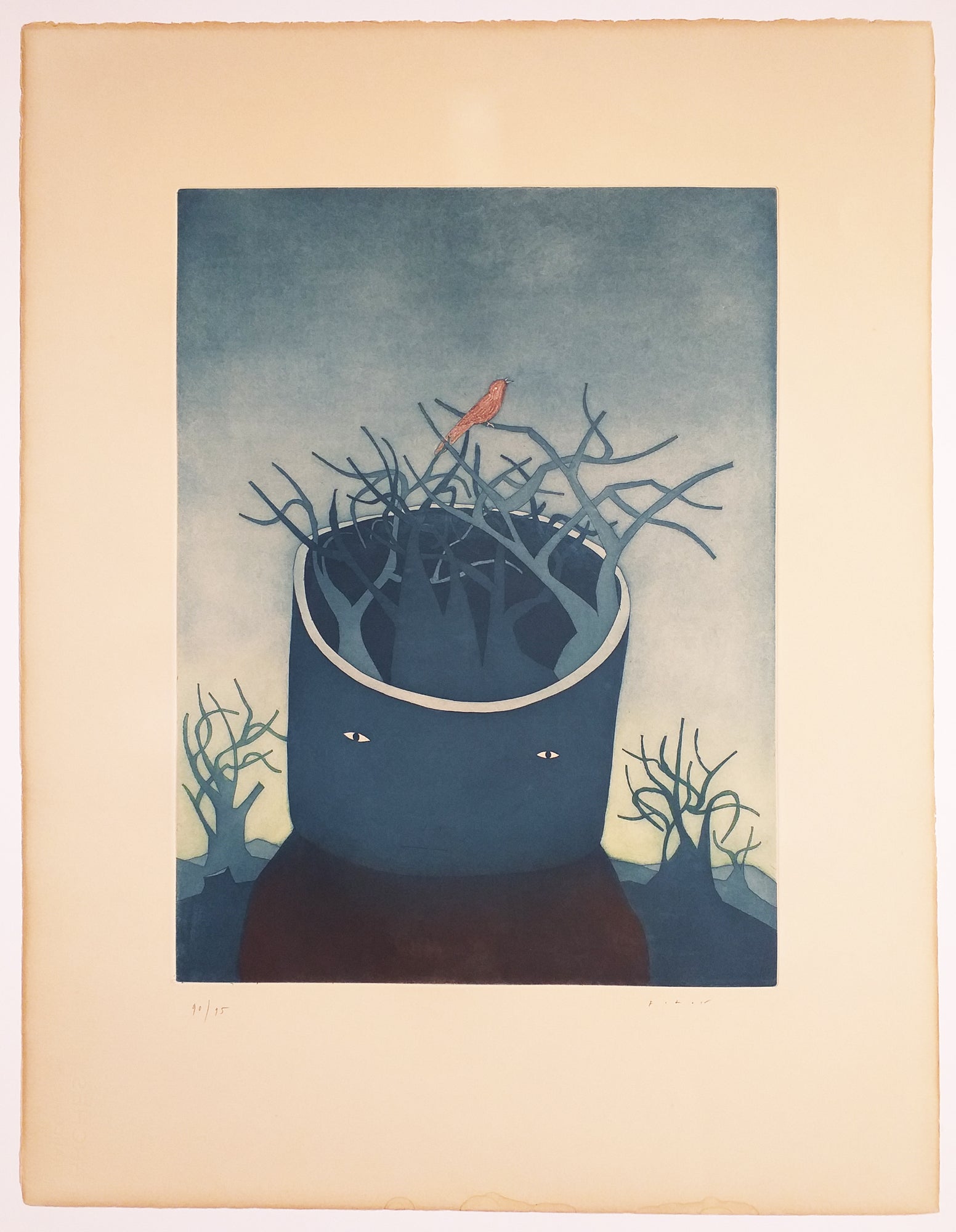 Epreuve sur vélin Arches crème, numérotée 90 d'un tirage à 95 exemplaires et signée au crayon par l'artiste. De la série de 10 pièces intitulées "Les ruines circulaires", publiée par les Editions André Sauret, à Monte-Carlo. Bonnes marges. |