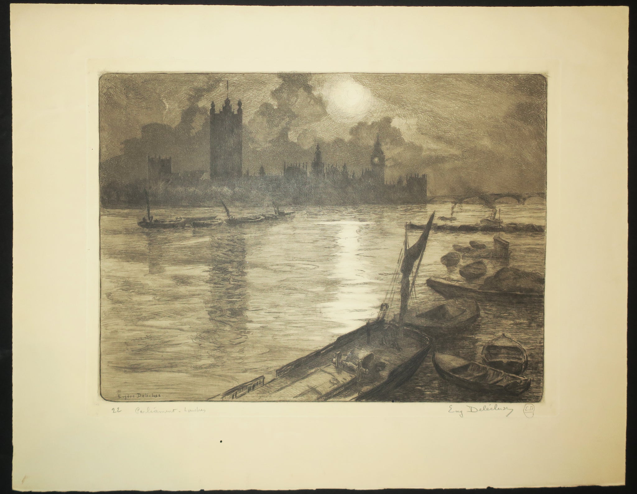 Signée à la pointe en bas à gauche dans la composition. Epreuve sur vélin crème, titrée, numérotée 22, contresignée au crayon noir par l'artiste et portant son cachet monogrammé. Marges. |