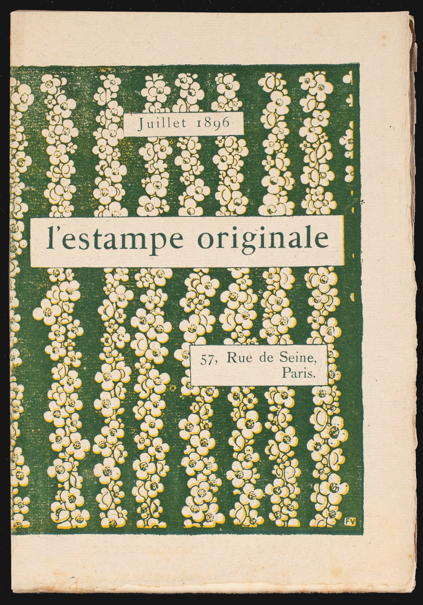 Couverture d'origine en papier vergé, illustrée de fleurs par Félix Vallotton (Lausanne 1865 † Paris 1925), signée du monogramme et imprimée en couleurs. Publié chez André Marty, directeur de l'"Estampe Originale", 57 Rue de Seine, à Paris. Bel état de conservation. |