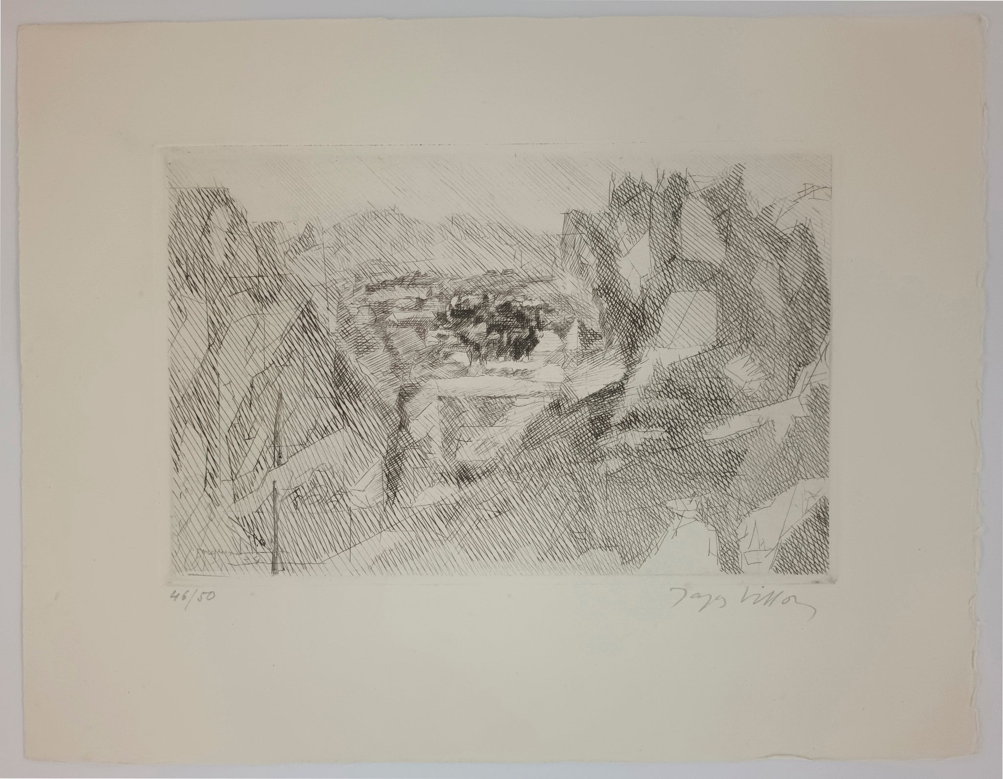 Signée et datée dans la planche. Epreuve du 2e état sur 2 sur velin Rives, contresignée au crayon et justifiée 46/50. |
