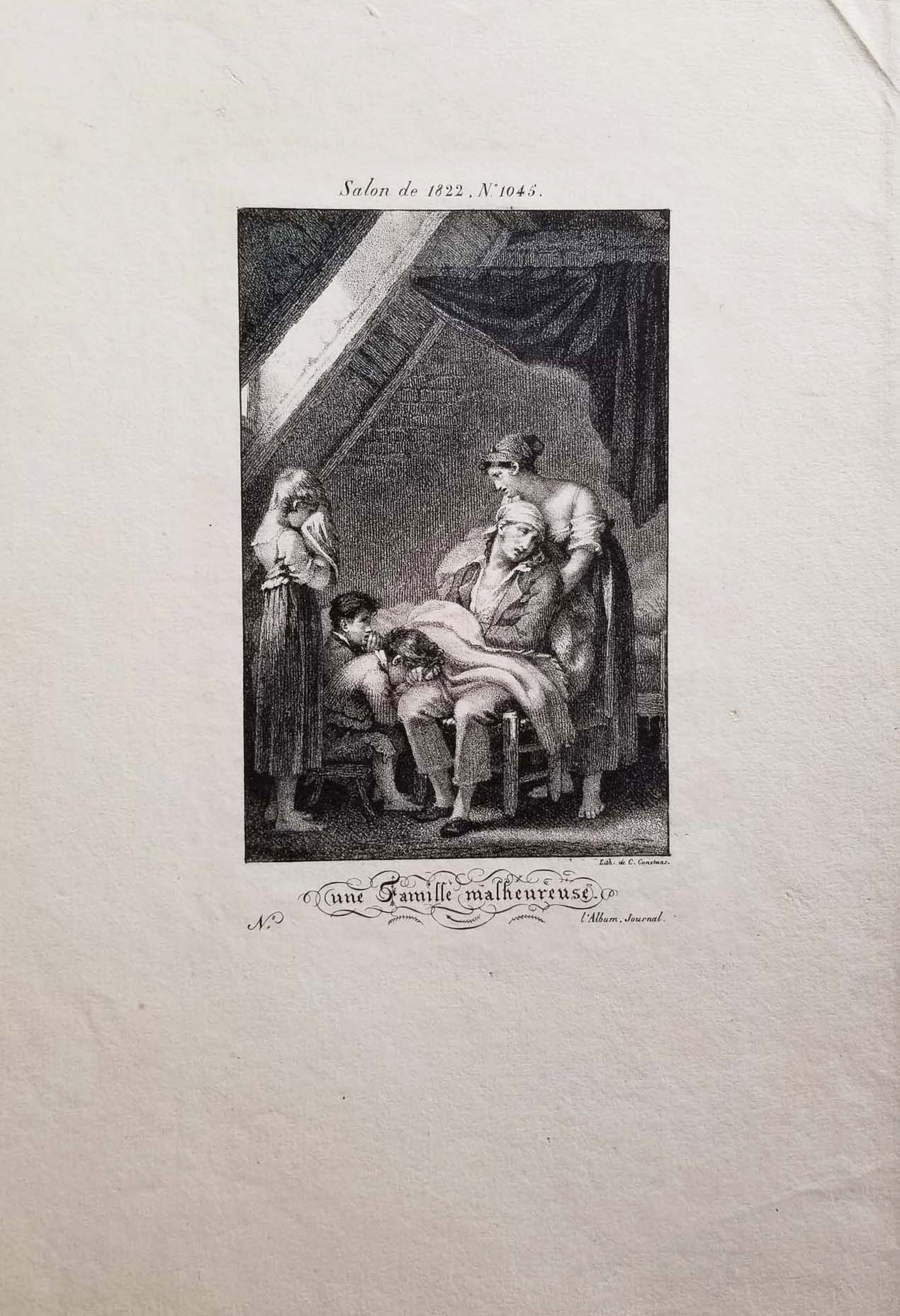 Epreuve du quatrième état sur quatre, avec le nom de l'imprimeur Charles Constans (1778 † 1847), sur papier vélin. Composition créée pour "L'Album" du 10 mars 1822. |