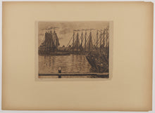 | Gravure originale à l'eau-forte et à l'aquatinte, imprimée en brun, sur papier vergé monté sur son support d'origine. |