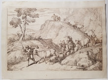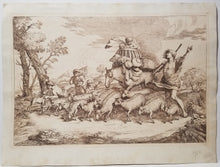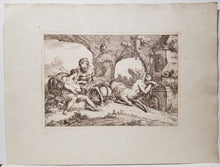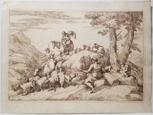 Anton Maria Zanetti l’ancien : un connaisseur influent Au début du XVIIIe siècle, l’estampe de peintre est mise à la mode par une nouvelle catégorie d’amateurs et de connaisseurs. À Venise, Anton Maria Zanetti (vers 1680 † vers 1767), correspondant régulier de Pierre-Jean Mariette et Pierre Crozat, œuvre activement à la promotion de l’eau-forte. Ce bibliophile passionné, éditeur et graveur-amateur, constitue en Italie l’une des plus belles collections d’estampes et de dessins de maîtres (Rembrandt, Parmigianino, Callot, Castiglione, etc.). Sur ses conseils, plusieurs peintres éminents de son temps, à l'instar de Giambattista Tiepolo, s'initient à l'eau-forte. C’est dire l’importance de Zanetti dans le milieu artistique vénitien, qui connaît en cette première moitié du XVIIIe siècle un nouvel âge d'or. L’âge d’or de l’estampe vénitienne : En plus d’être l’une des plaques tournantes du marché du livre en Europe, la Sérénissime compte alors parmi les grands centres de la gravure, aux côtés de Rome, Paris, Londres et Amsterdam. Le commerce de l’estampe y fleurit principalement autour du Rialto et des Mercerie, et bénéficie de la clientèle fortunée du Grand Tour, avide de belles épreuves représentant la cité des Doges, ou de sujets plus pastoraux, comme ceux de notre album, Varii capricci, e paesi. Zompini-Zanetti : une collaboration fructueuse Celui-ci fut gravé d'après Castiglione par Zompini, un élève de Nicolò Bambini et suiveur de Sebastiano Ricci, à à la demande de Zanetti, qui souhaitait par là mettre en avant les dessins de sa propre collection. Il s'agit de la seconde collaboration entre les deux hommes. En effet, au tout début des années 1750, encouragé par Zanetti, Zompini livre une première suite gravée illustrant les métiers ambulants de Venise (Le arti che vanno per via nella città di Venezia, 1753). Ces sujets d’inspiration populaire représentant, par des tableaux sensibles et sans fard, le quotidien du peuple vénitien, connaissent un grand succès. Fort de cette première expérience, Zompini exécute trois ans plus tard la présente série de gravures, au style plus délicat et raffiné. Preuve de sa popularité, l’album des Varii capricci, e paesi bénéficie d’une réédition (1786) conduite par le diplomate anglais John Strange (1732 † 1799), installé à Venise depuis 1773 et qui contribua à faire connaître l’œuvre gravé de Zompini outre-Manche. |