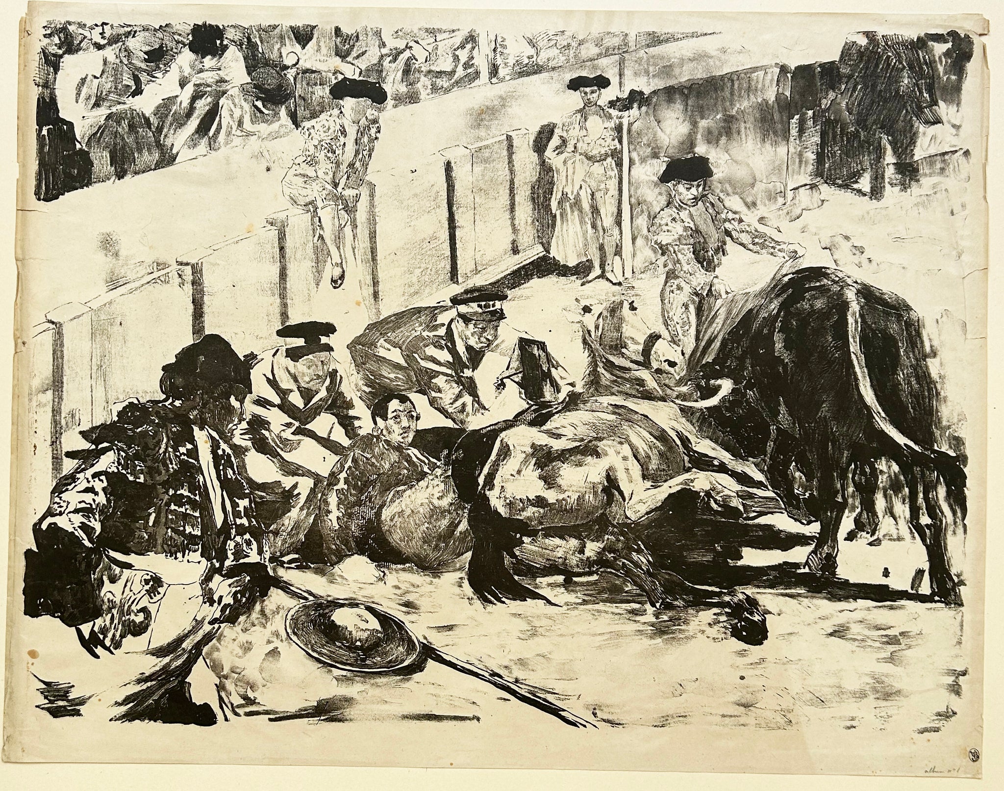 Planche de la suite "La Corrida". Epreuve imprimée en noir sur papier chine, revêtue de la marque de collection de Emmanuel Alfred Beurdeley (Paris 1847-id. 1919), Lugt 421. Marges. |