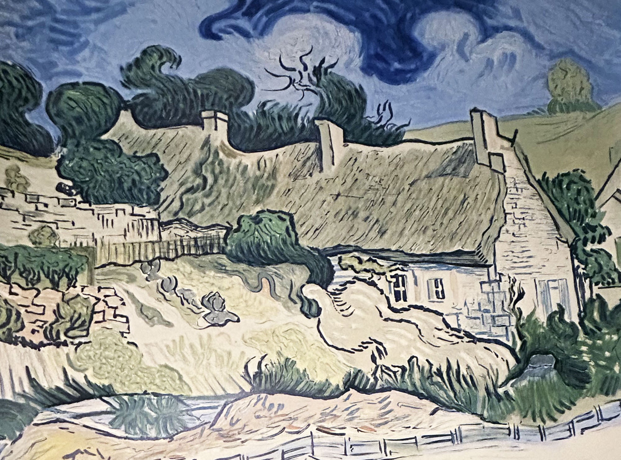 | Lithographié par Charles Sorlier (Paris 1921 † Neuilly-sur-Seine 1990) d'après le tableau "Chaumes de Cordeville à Auvers-sur-Oise" conservé aujourd'hui au Musée d'Orsay à Paris. |